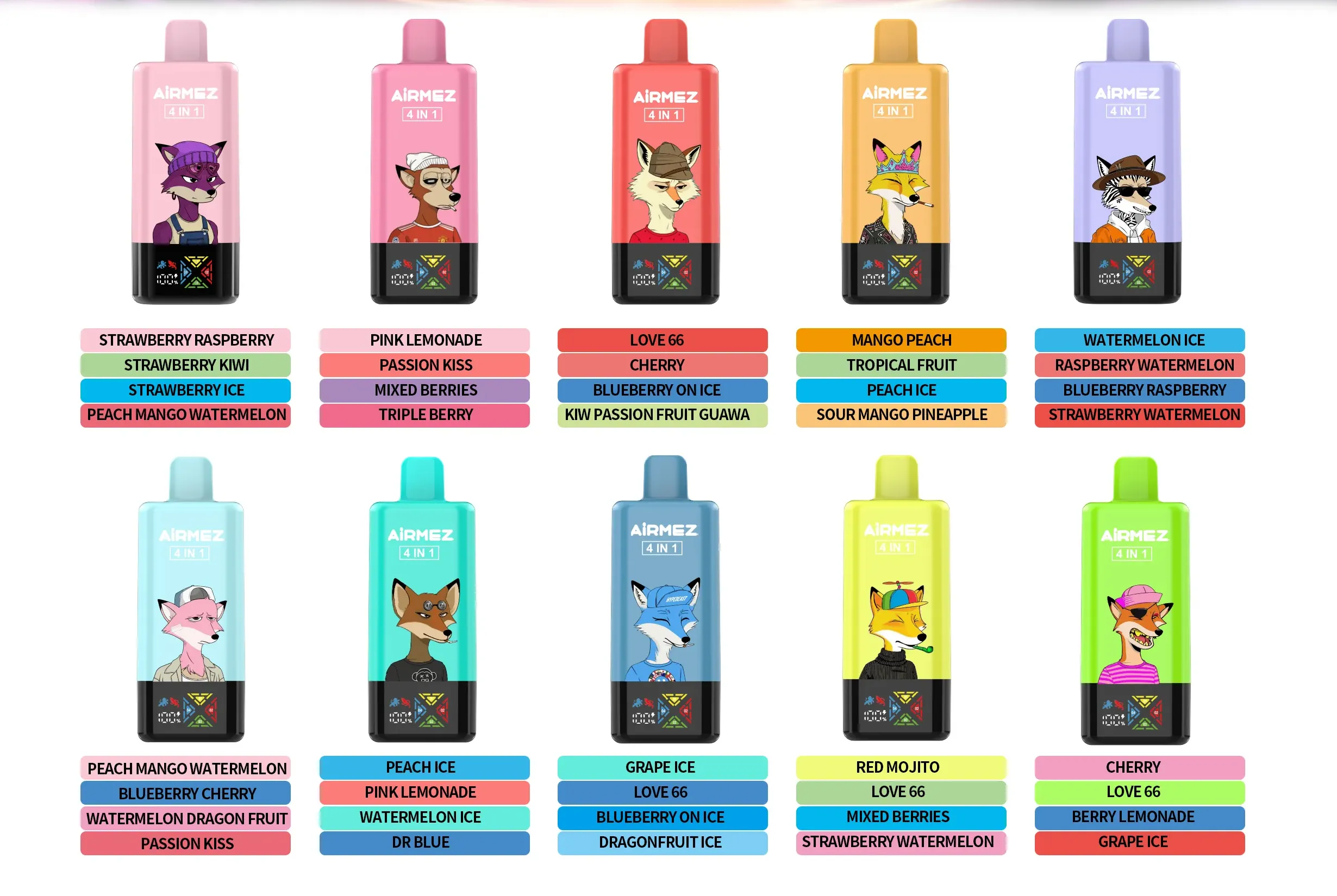 • Peach Ice & Pink Lemonade & Watermelon Ice & Dr Blue