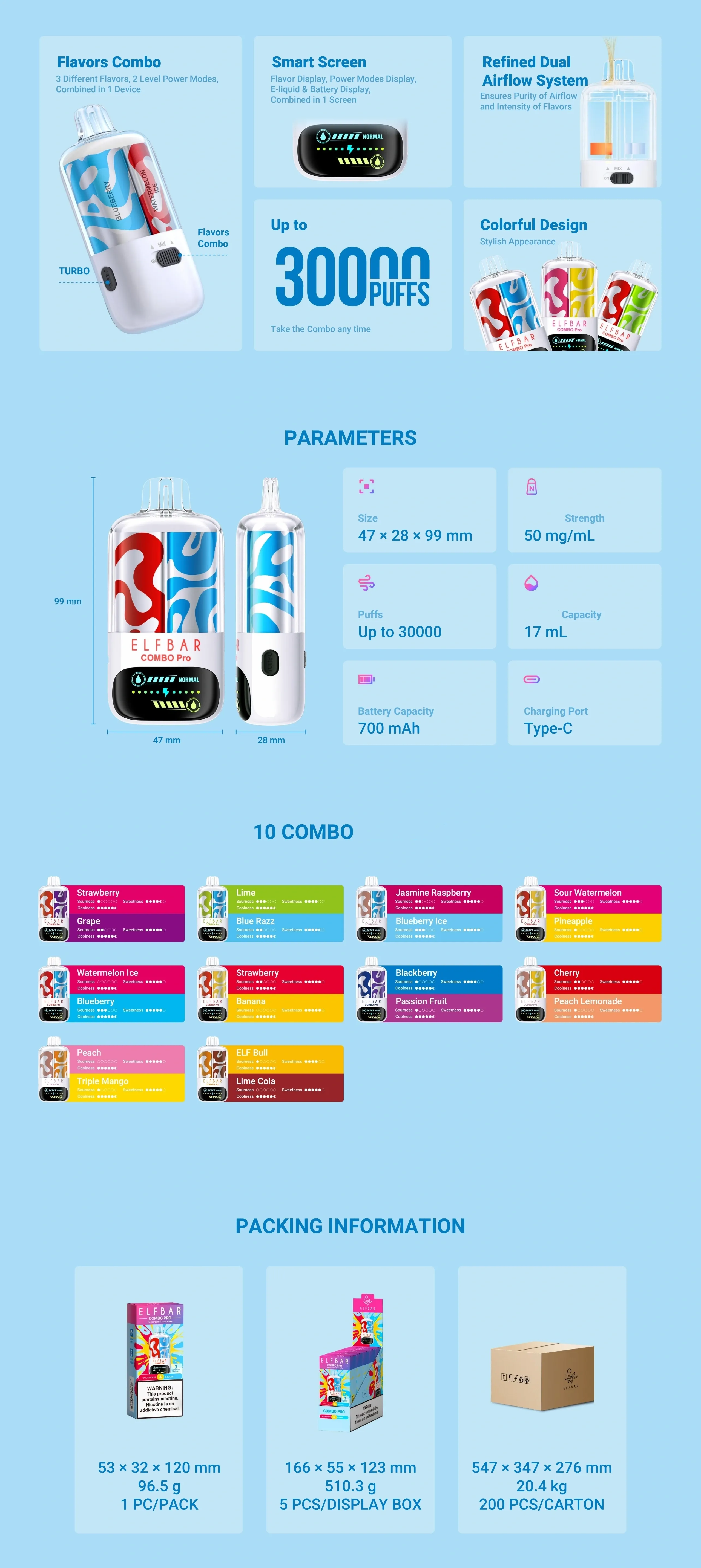 The authentic ElfBar Elf Bar Combo Pro 30K with dual style system, mesh coil, digital display and up to 30000 puffs changing disposable vape.